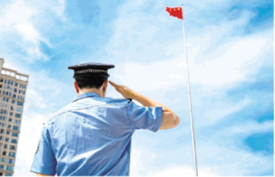 圖為在6月26日國際禁毒日,郭朝偉向國旗敬禮。 許鵬昊 攝