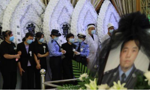 時(shí)值仲夏,通往陜西省興平市殯儀館道路兩旁站滿了戰(zhàn)友和群眾,送別民警陳勇。