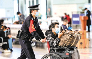 圖為高明偉為行動(dòng)困難的旅客提供幫助。 王榮鑫 攝