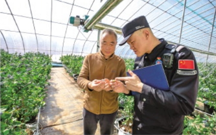馬市邊境派出所轄區(qū)是丹東市有名的“菜籃子”基地,轄區(qū)群眾多以大棚種植為生,從沒接觸過農(nóng)家活的李鵬笑稱,“這個大棚,可比我這個‘大鵬’難接觸多了?!?/p>