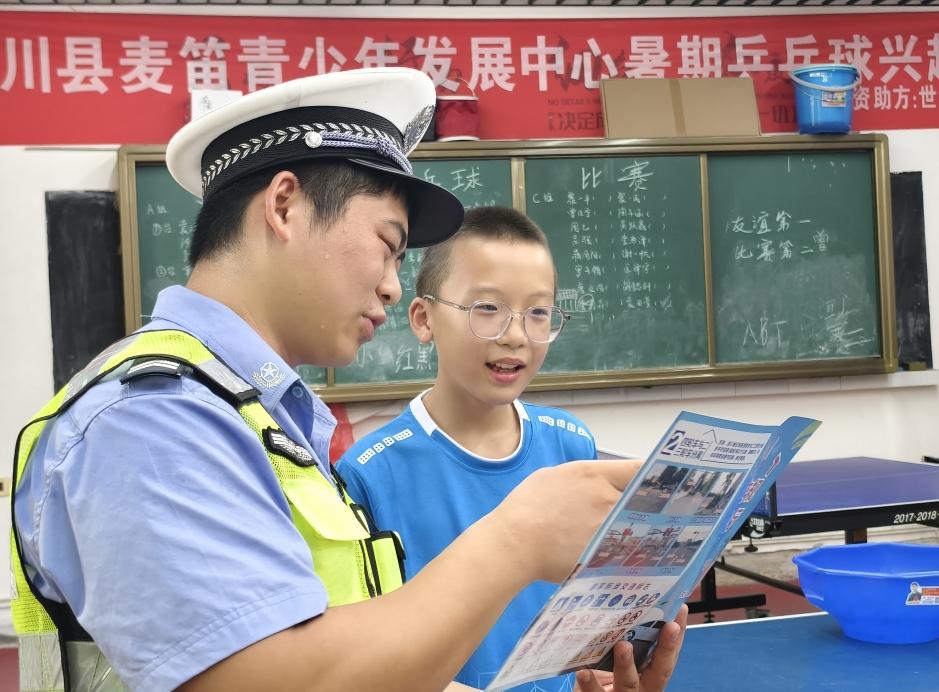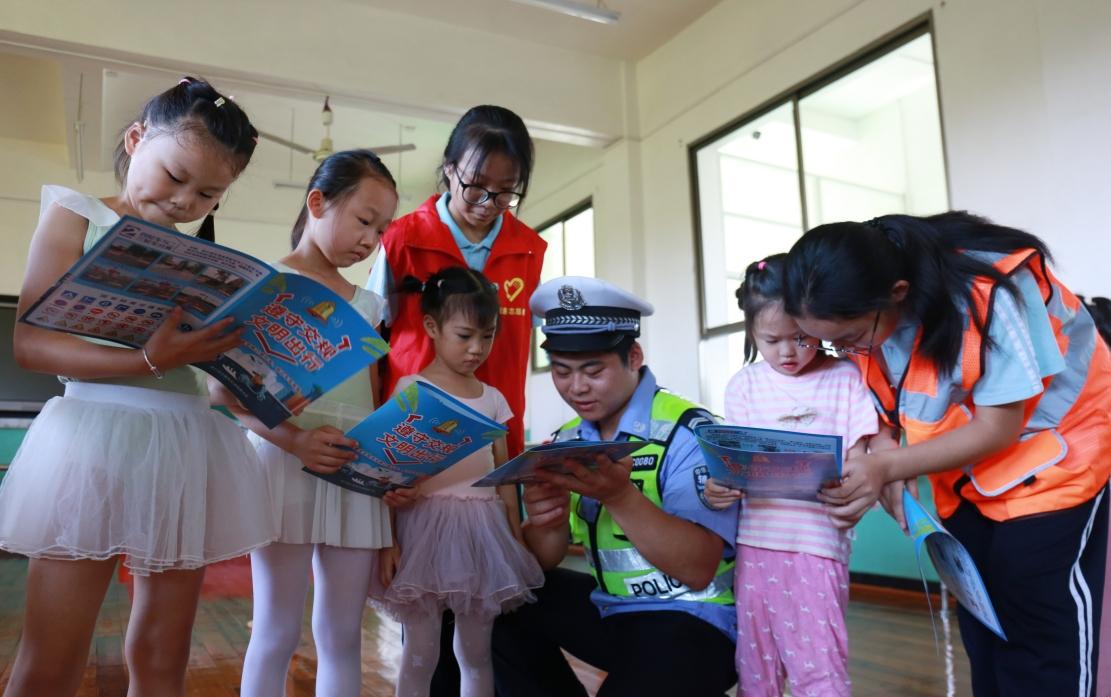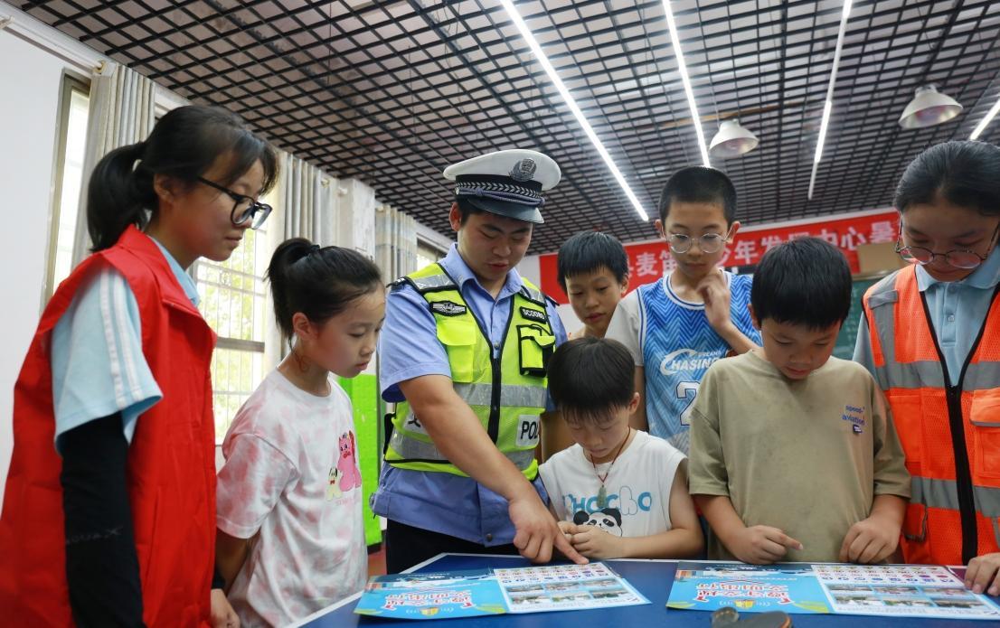 連日來(lái),江西省吉安市遂川縣公安局交警大隊(duì)組織民警和青年志愿者走進(jìn)轄區(qū)暑期興趣班,通過(guò)以案說(shuō)法、知識(shí)問(wèn)答等方式宣講交通安全知識(shí),引導(dǎo)孩子們正確識(shí)別交通標(biāo)志標(biāo)線(xiàn),提升自我保護(hù)能力。圖為7月23日,民警走進(jìn)暑期興趣班宣講交通安全知識(shí)。