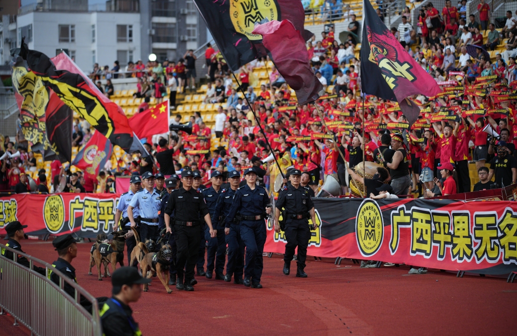 據(jù)統(tǒng)計,平果市2023年開始承辦中甲賽事以來,平果公安組織開展安保活動33場次,投入警力12000余人次,全市刑事警情、治安警情數(shù)實現(xiàn)三年連降,矛盾糾紛調(diào)處率達(dá)96%,有力維護(hù)轄區(qū)和諧穩(wěn)定,助力“足球經(jīng)濟(jì)”蓬勃發(fā)展。