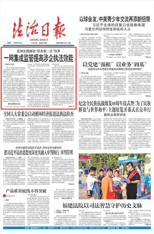 2024年5月,蕪湖市“綜合查一次”改革破冰。2025年1月,被確定為安徽省“綜合查一次”改革唯一試點城市以來,蕪湖市聚焦“減少檢查次數(shù)、提升執(zhí)法質(zhì)效、提高企業(yè)滿意度”目標,以“機制重構(gòu)、流程再造、數(shù)字賦能”的改革思維,推動從單一查向聯(lián)合查、從隨意查向規(guī)范查、從全覆蓋向精準查、從重管理向重服務(wù)“四個轉(zhuǎn)變”,探索形成跨部門、跨領(lǐng)域、跨層級的聯(lián)合行政執(zhí)法檢查機制,有效減輕企業(yè)負擔,為企業(yè)營造良好的法治化營商環(huán)境。