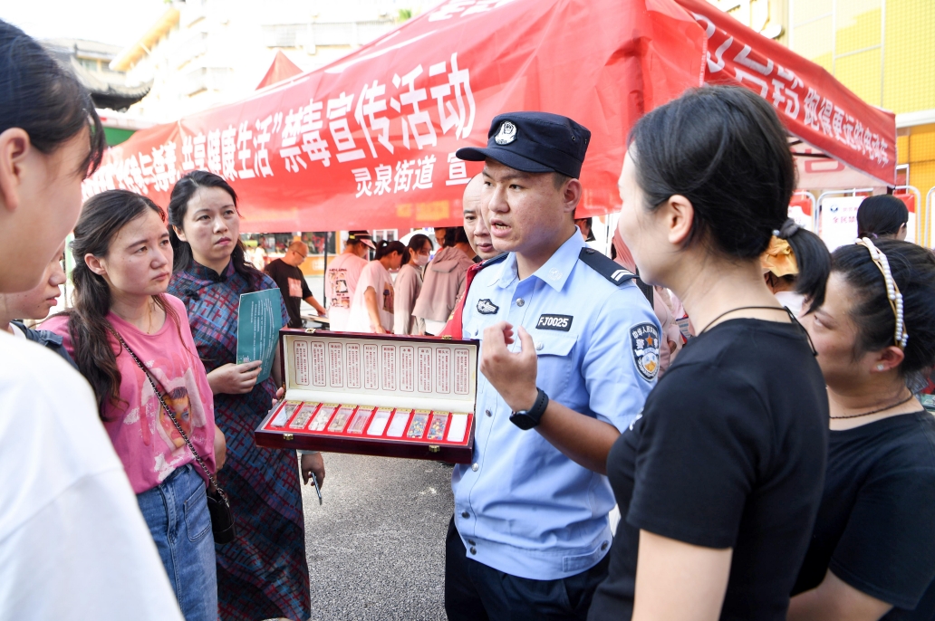 近日,江西省宜春市袁州區(qū)靈泉街道聯(lián)合靈泉派出所在鼓樓廣場開展“全民參與禁毒、共享健康生活”禁毒宣傳活動,通過展示毒品模型、以案釋法、現(xiàn)場答疑等方式,全面提升人民群眾識毒、防毒、拒毒意識,營造全民禁毒濃厚氛圍。
