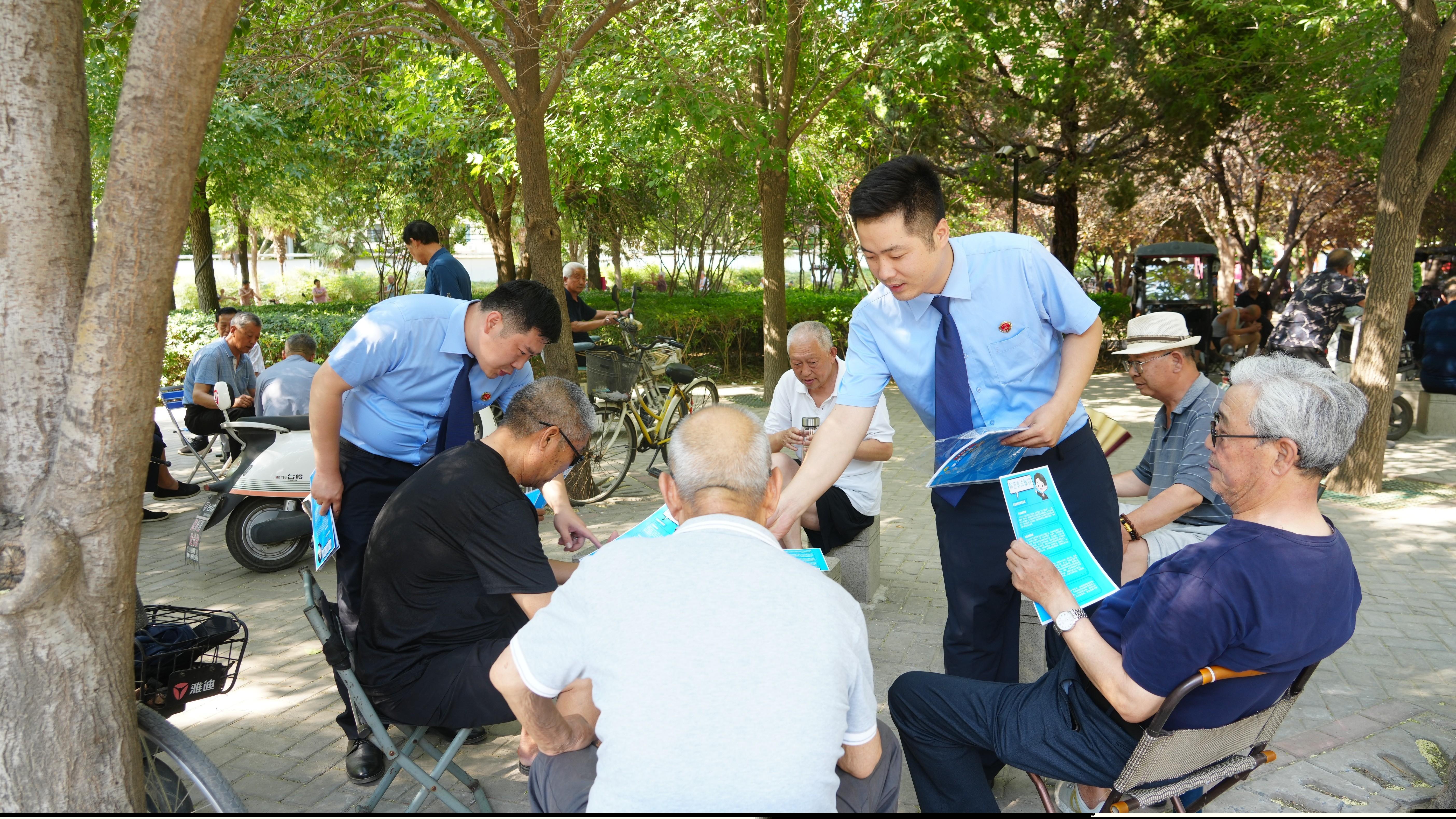 圖為7月22日,溫縣人民檢察院干警向老年人發(fā)放防范電信網(wǎng)絡詐騙宣傳資料。