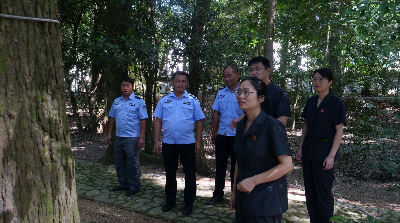 圖為8月15日,法院干警和護林員在蛟潭鎮(zhèn)古樹名木司法保護基地開展巡查,并向群眾普及林業(yè)保護知識。