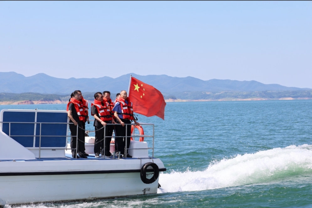 圖為2025年8月11日,一支由鄂豫兩地檢察機關(guān)、法院、公安、水利、生態(tài)環(huán)境等部門組成的聯(lián)合巡查船隊在庫區(qū)開展常態(tài)化巡查。
