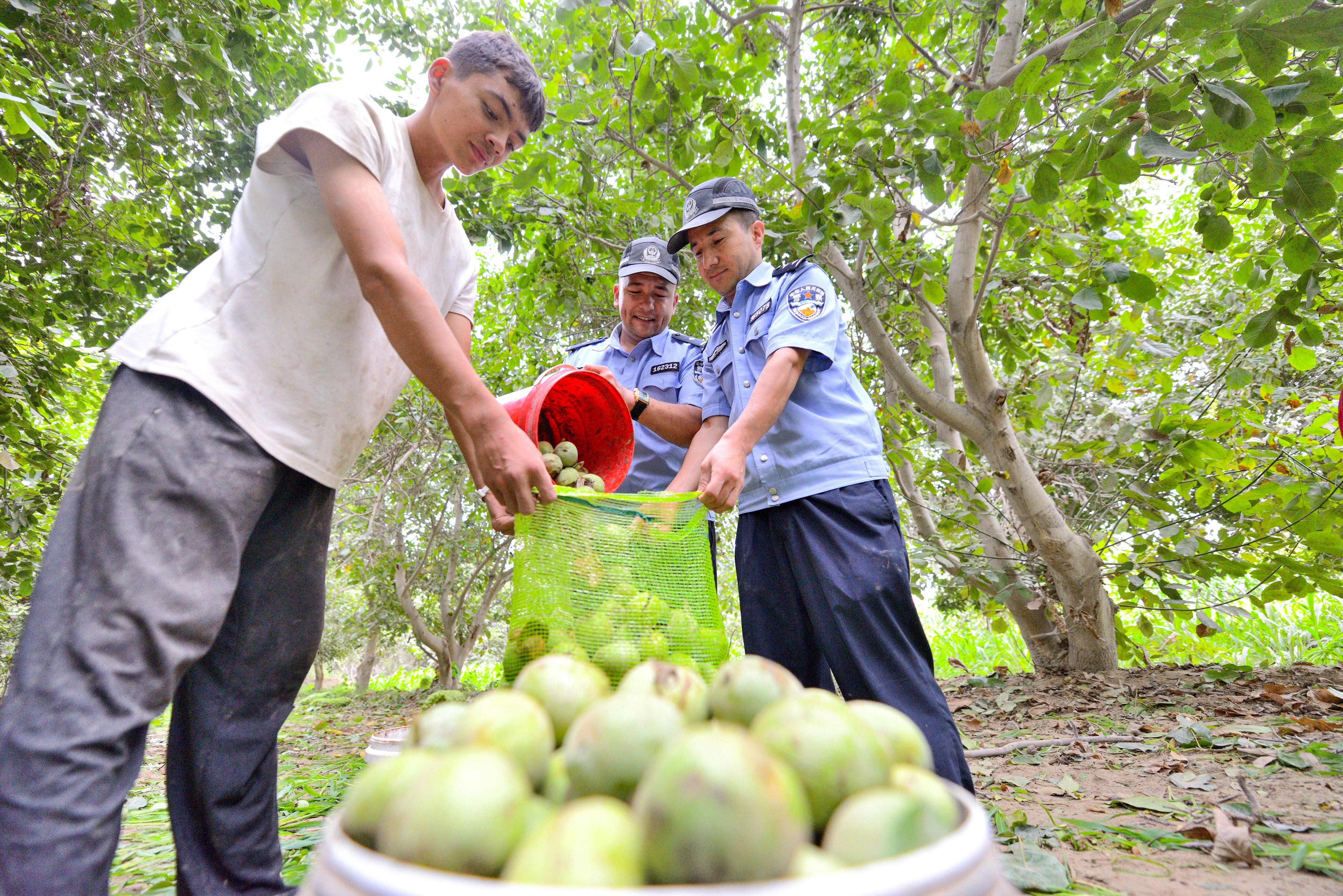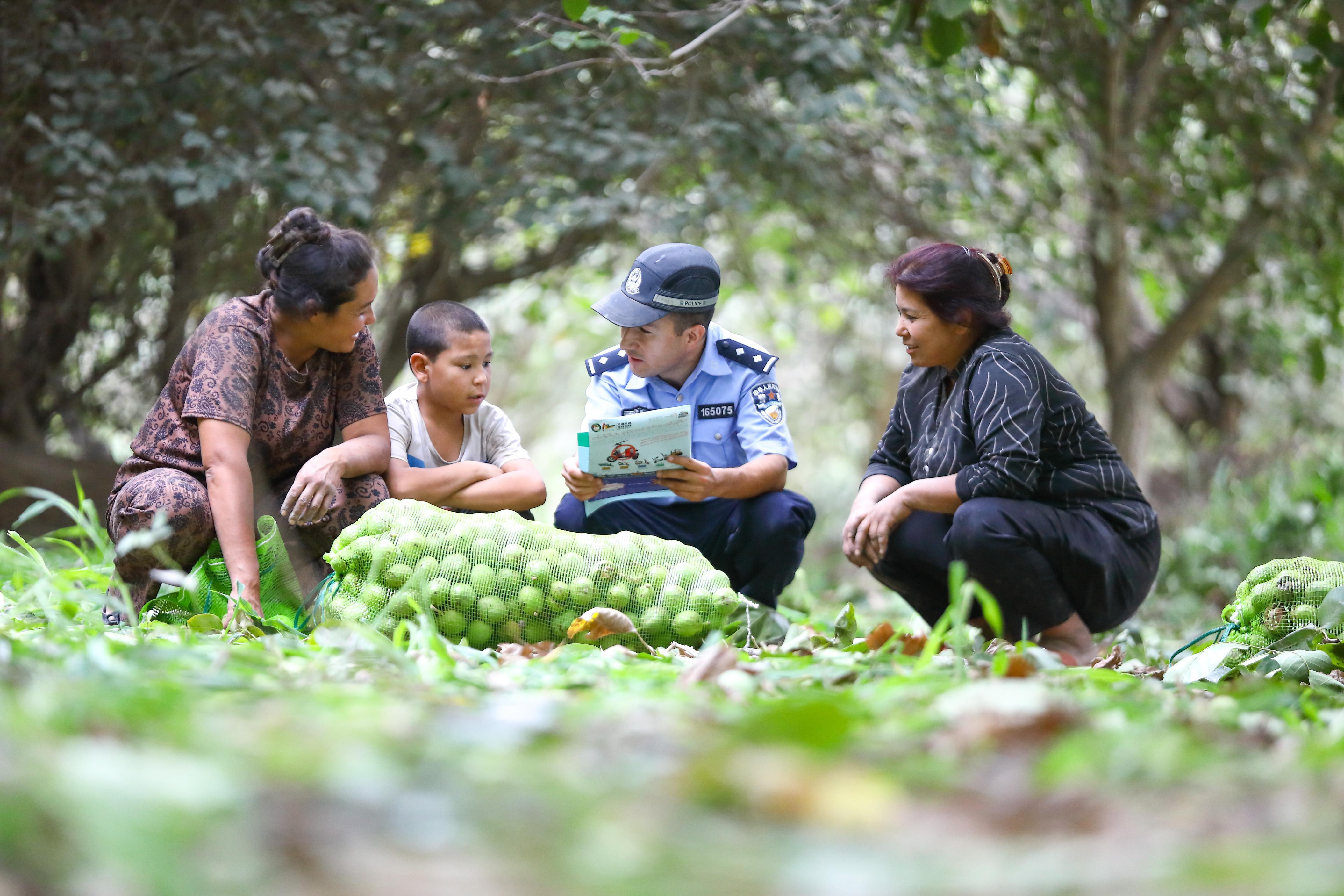 8月18日,在新疆葉城縣依力克其鄉(xiāng)的核桃園里,陣陣爽朗的招呼聲打破了田間的寧靜。葉城縣公安局依力克其鄉(xiāng)派出所組建的助農(nóng)小分隊深入轄區(qū)核桃園,一邊幫群眾采收核桃,一邊開展普法宣傳活動,用貼心服務獲得群眾的紛紛點贊,成為秋日里一道溫暖的風景線。