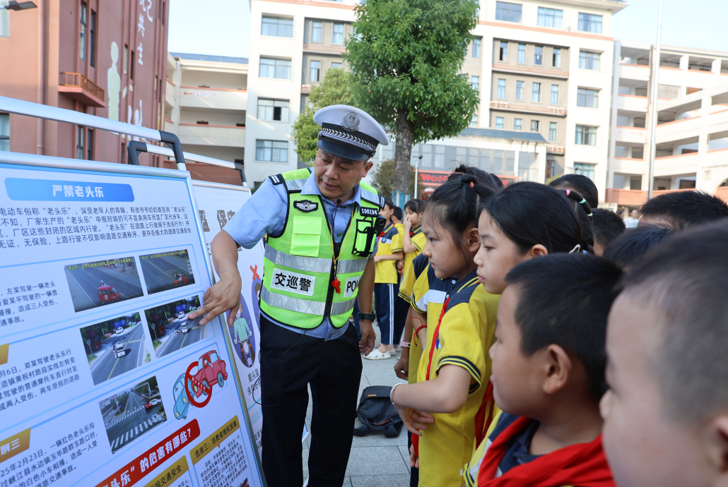 連日來,江西省遂川縣公安局組織民輔警走進(jìn)轄區(qū)校園,通過互動游戲、情景模擬等方式,向同學(xué)們宣傳防欺凌、防詐騙、防溺水及交通安全知識,通過“小手拉大手”將安全知識延伸至每個家庭。