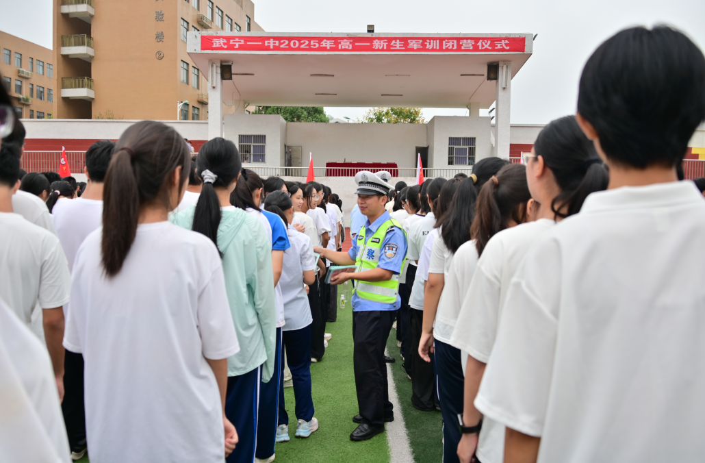 9月7日,江西省武寧縣第一中學舉行高一新生秋季軍訓結(jié)營儀式。武寧縣公安局交通管理大隊組織民警走進校園,通過集中宣傳、面對面交流、發(fā)放宣傳單等方式,提升學生們的交通安全意識和自我保護能力。