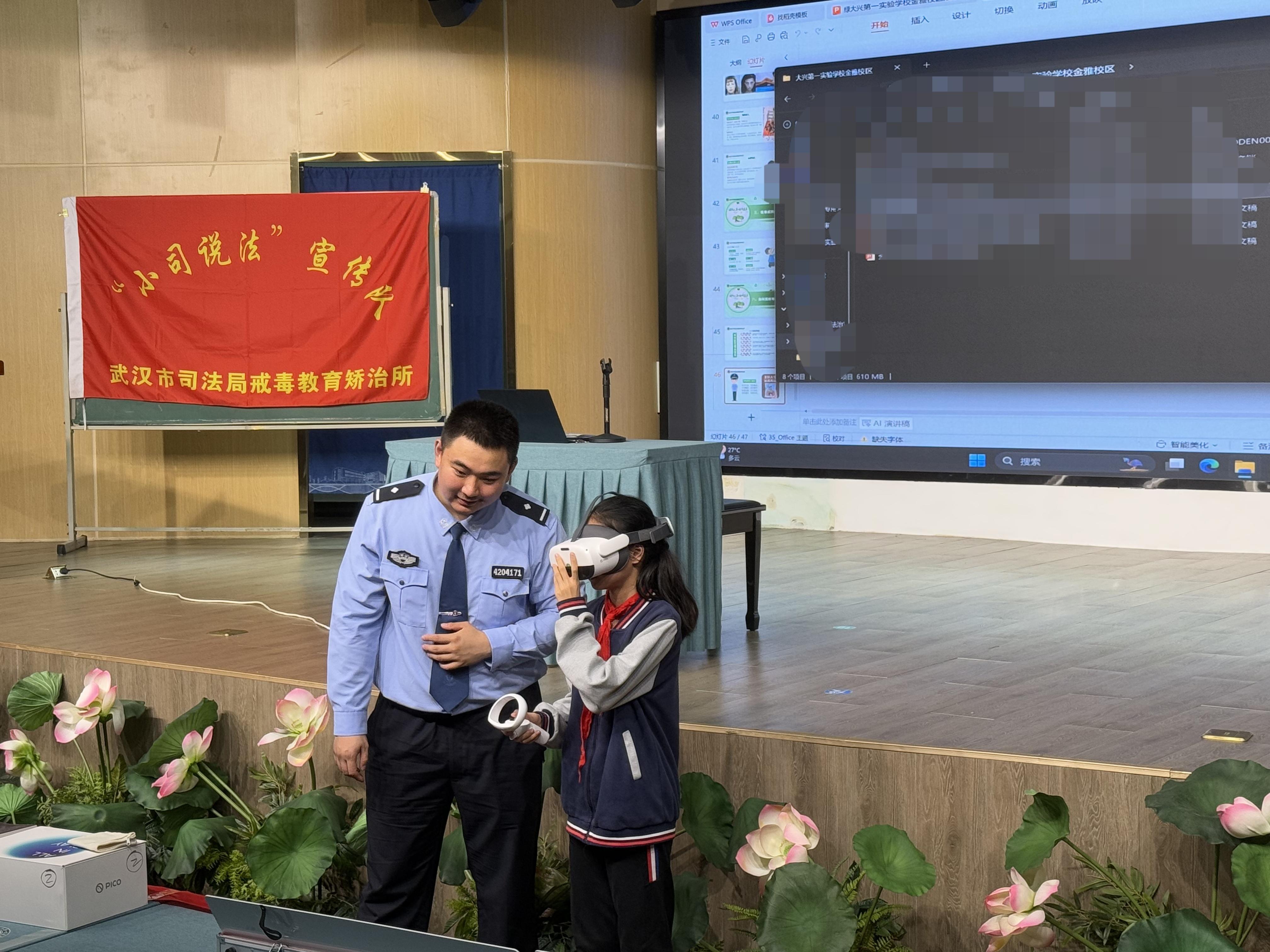 圖為戒毒民警引導學生通過VR設(shè)備體驗毒品的危害。