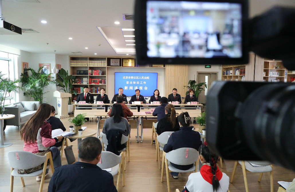 圖為密云區(qū)法院召開新聞發(fā)布會,向社會通報普法驛站建設情況。