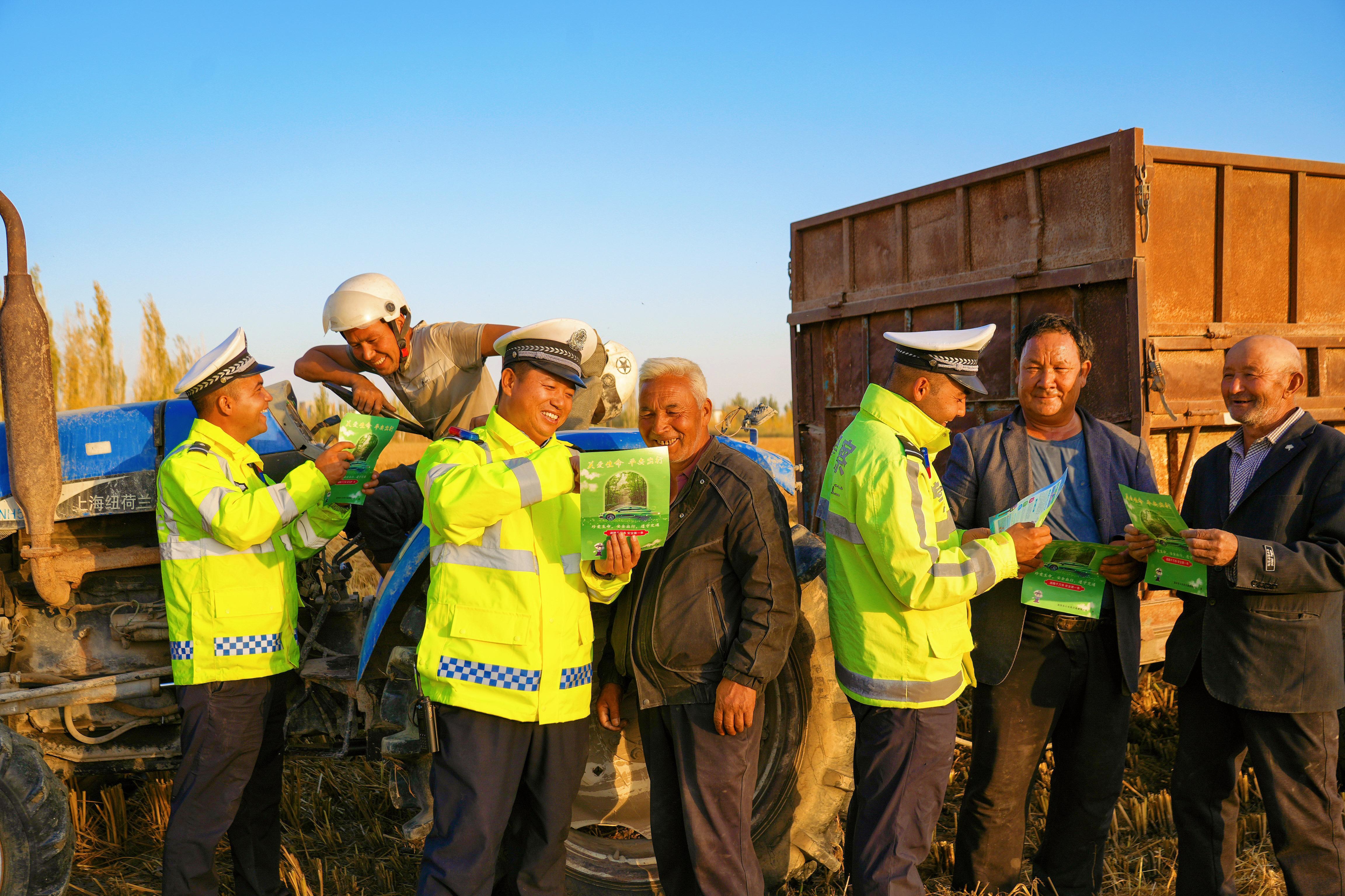 連日來,新疆溫宿縣公安局交通管理大隊主動作為,組織民警深入轄區(qū)各鄉(xiāng)鎮(zhèn)的田間地頭,零距離開展交通安全宣傳活動,并對農(nóng)用車輛進行安全“體檢”,為秋收農(nóng)忙系上“安全帶”。