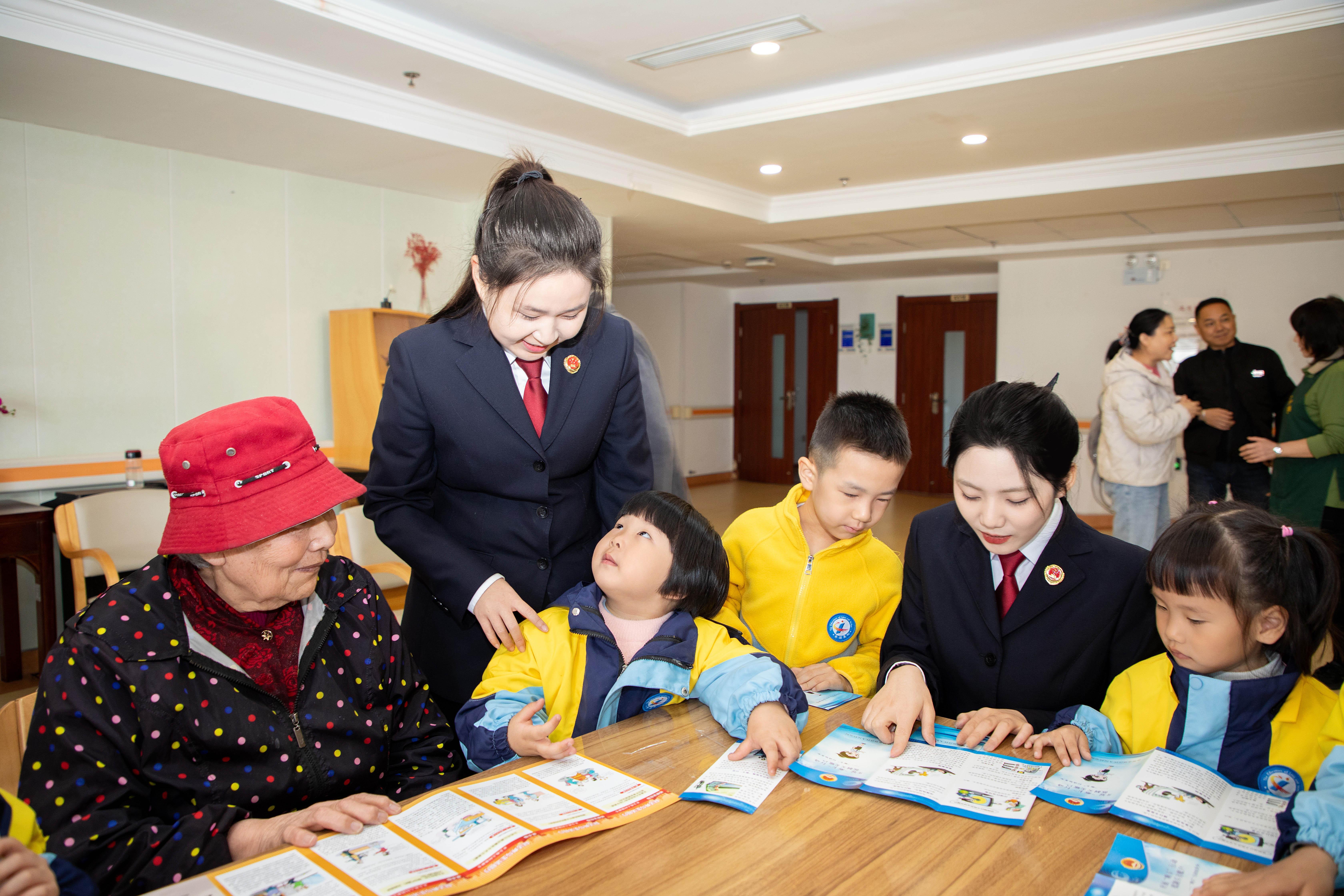 10月28日,江蘇省徐州市賈汪區(qū)人民檢察院公益訴訟檢察部門干警與慧秀林幼兒園共同開展“重陽愛老”活動,走進養(yǎng)老機構(gòu)與老人們促膝長談,耐心傾聽他們的生活感受和法治需求。檢察官用生動的案例,向一老一小講解養(yǎng)老詐騙的常見套路,把法律知識變成通俗易懂的“防騙指南”,在傳遞敬老愛老傳統(tǒng)美德的同時,為老人筑起防范養(yǎng)老詐騙的法治屏障。