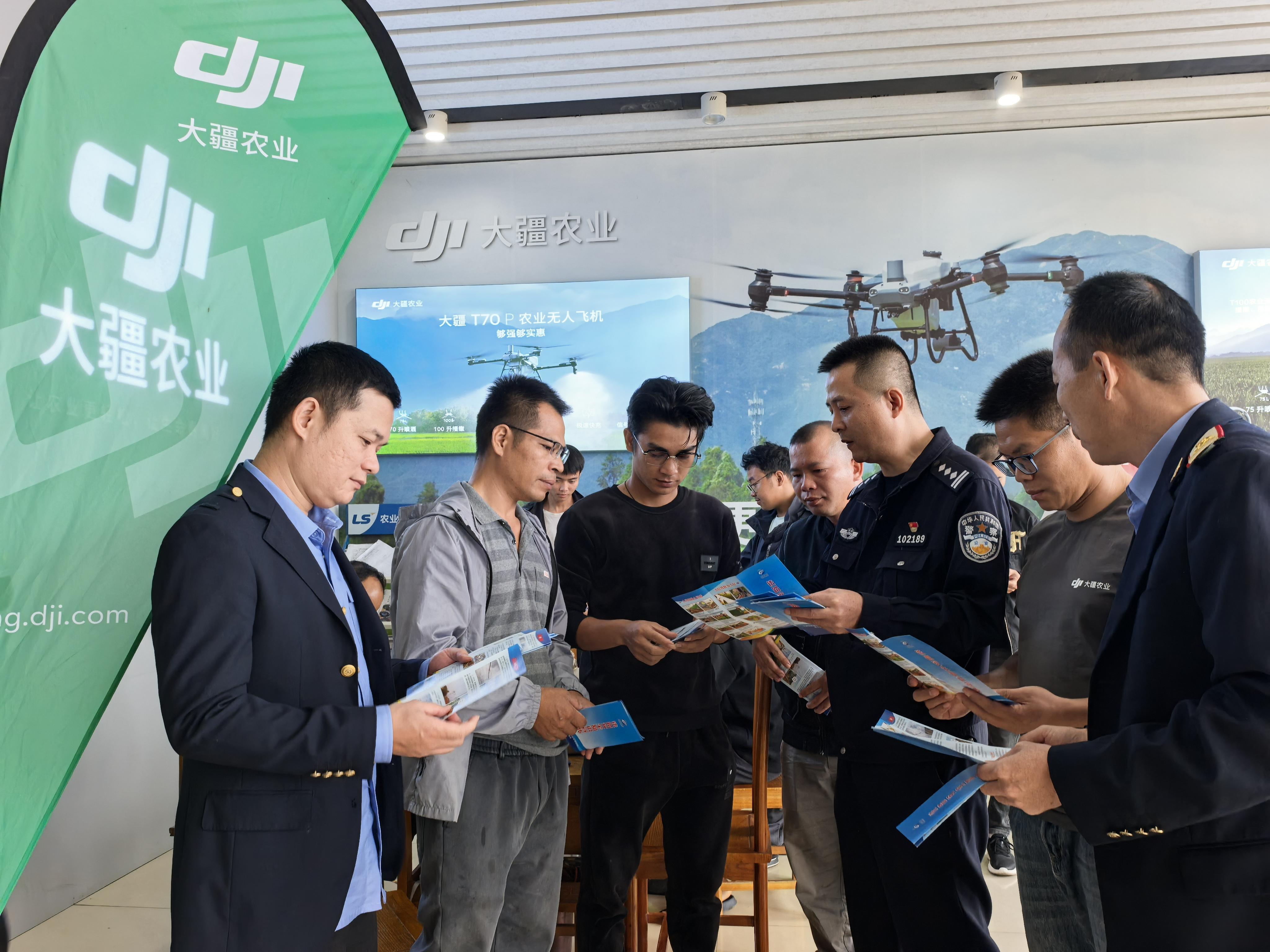 活動現(xiàn)場,賓陽站派出所重點強調農用無人機備案登記、適飛空域申報流程的必要性,并通過實際案例開展警示宣傳;鐵路部門代表詳細解讀鐵路線路兩側500米禁飛區(qū)規(guī)定及其法律責任;賓陽縣農業(yè)農村局代表講授農業(yè)飛防相關知識;大疆專營店技術員則深入講解鐵路沿線作業(yè)的避障設置、緊急狀況處置等關鍵安全操作技術要點?;顒幼詈笤O置答疑環(huán)節(jié),并向參與者發(fā)放安全飛行宣傳資料。
