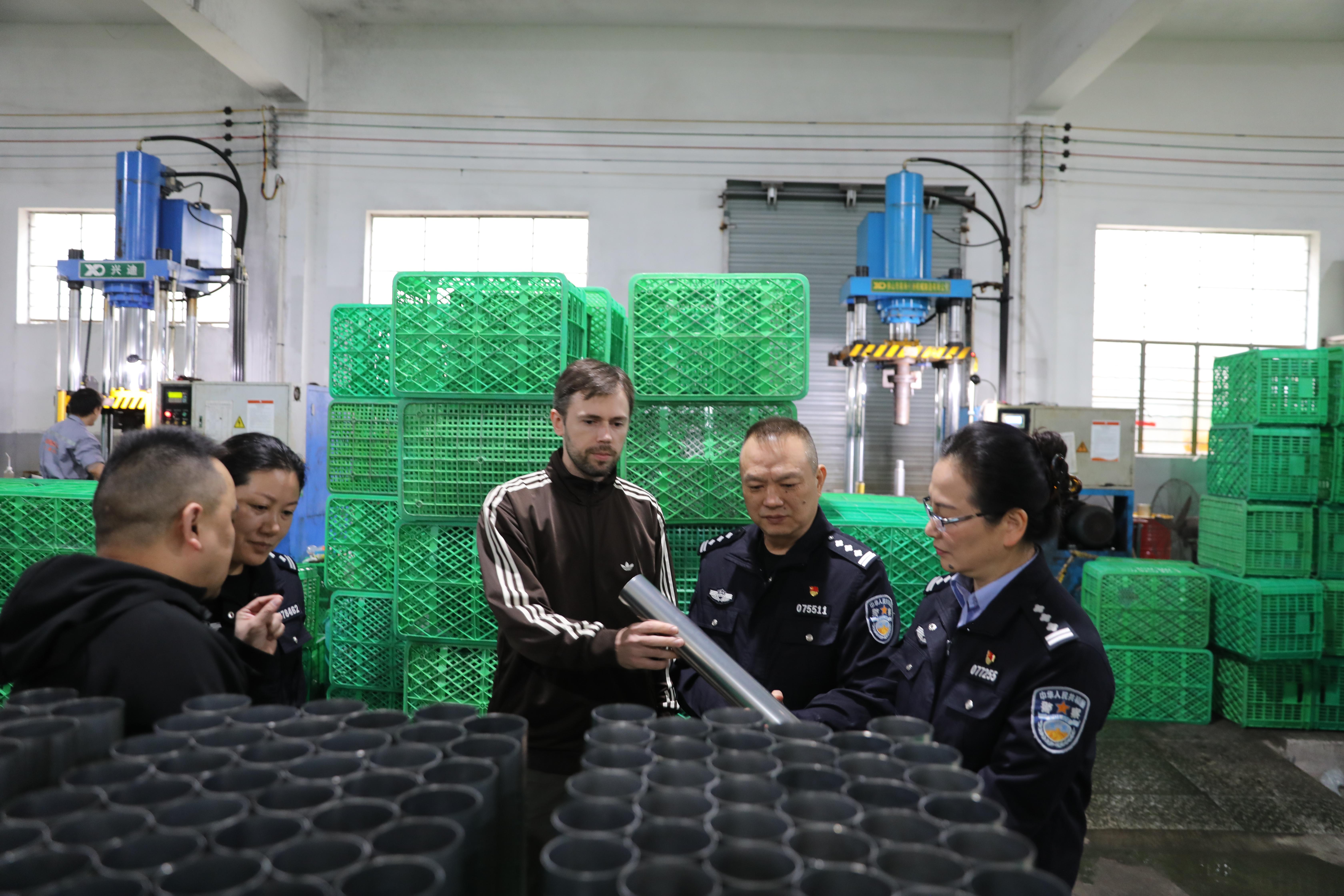 在另一家企業(yè),俄羅斯籍法人彭浩然(中文名)帶著民警參觀生產(chǎn)線,語氣里滿是認可:“我來縉云10年,娶了中國妻子、扎了根,企業(yè)年產(chǎn)值3000多萬元,離不開警察的貼心服務(wù)?!彼f,民警不僅上門講政策,還會提前提醒簽證到期,“比自己想的還周到,感覺就像家人一樣”。