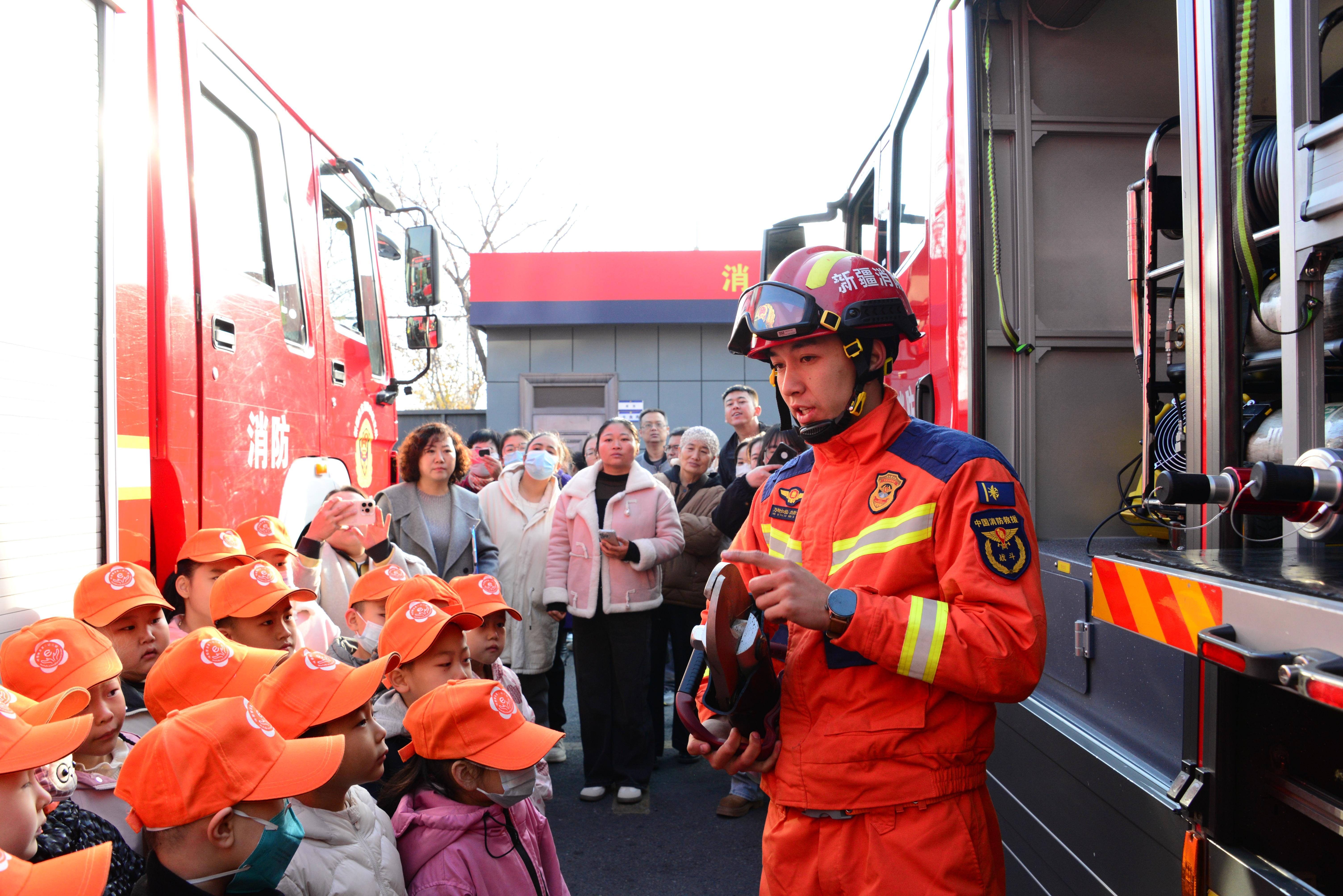 11月4日,新疆呼圖壁縣第二幼兒園的100余名師生及家長走進呼圖壁縣消防救援大隊,“零距離”體驗、了解、學習消防知識,開啟了一場消防安全之旅。