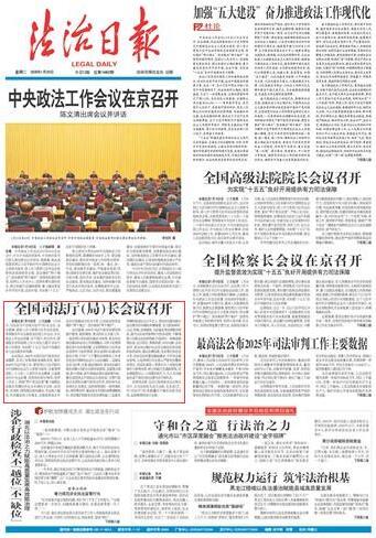 本報北京1月19日訊 記者趙婕 1月19日,司法部召開全國司法廳(局)長會議。會議強(qiáng)調(diào),要深入學(xué)習(xí)貫徹習(xí)近平法治思想,貫徹落實中央全面依法治國工作會議、中央政法工作會議部署,實干篤行,擔(dān)當(dāng)作為,圍繞服務(wù)黨和國家工作大局加力提升司法行政工作質(zhì)效,為實現(xiàn)“十五五”良好開局提供有力法治服務(wù)和保障。