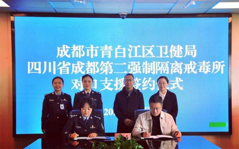 為進(jìn)一步提高場(chǎng)所戒毒醫(yī)療工作管理專業(yè)化、規(guī)范化水平,提升戒毒醫(yī)療隊(duì)伍整體業(yè)務(wù)素質(zhì),近日,四川省成都第二強(qiáng)制隔離戒毒所與成都市青白江區(qū)衛(wèi)生健康局簽訂對(duì)口支援合作協(xié)議。成都市青白江區(qū)衛(wèi)生健康局黨組書記、局長李顯榮,四川省成都第二強(qiáng)制戒毒隔離所黨委副書記、政委羅濰等出席簽約儀式?!?/p>