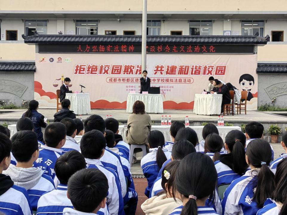 在德源中學,一場別開生面的“模擬法庭”活動正在莊嚴地進行,庭審中,15名青少年化身審判員、書記員、公訴人、辯護人、法警等角色,共同參與審理一起校園欺凌案件,活動通過還原庭審過程,讓師生們“沉浸式”感受法律威嚴?;顒又?,德源司法所的工作人員還為同學們送上憨態(tài)可掬的“法治熊貓”。
