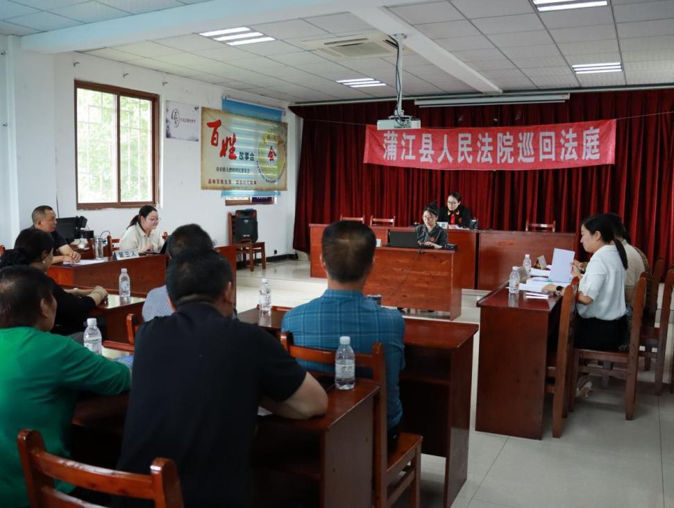 國徽高懸,法槌輕放。幾張桌椅,幾塊桌牌。一個莊嚴肅穆的巡回法庭,就這樣在四川省成都市蒲江縣某村村委會“落戶”了!
