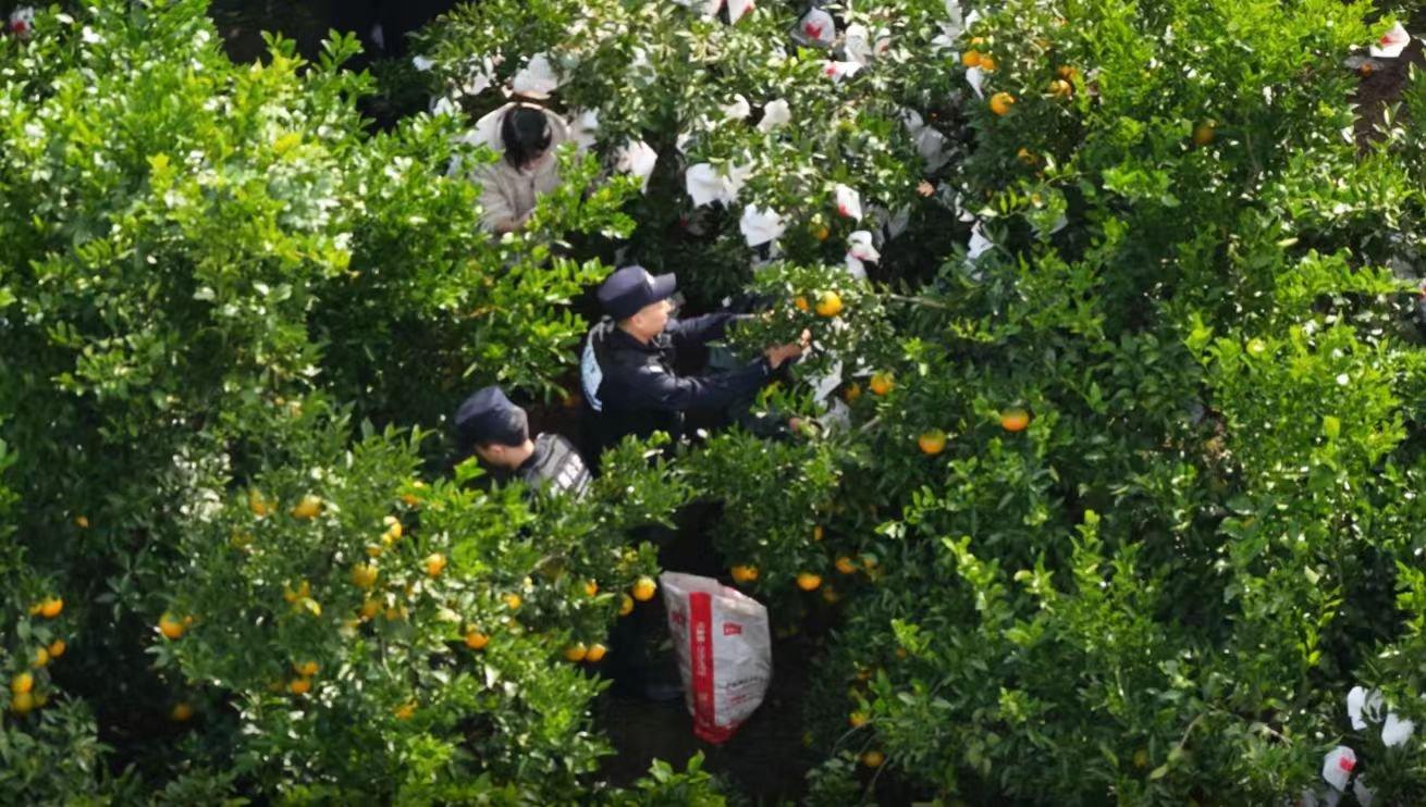四川省眉山市仁壽縣新店鎮(zhèn)的丘陵間碩果滿枝——作為柑橘“清見”的產(chǎn)業(yè)發(fā)源地,3.7萬余畝晚熟柑橘進入采摘季,清見、不知火、春見等優(yōu)質(zhì)品種掛滿枝頭,果農(nóng)穿梭林間采摘分揀,歡聲笑語中洋溢著豐收的甜蜜。田間果園,仁壽縣公安局新店派出所化身“清見衛(wèi)士”,讓“錢袋子”與“平安符”雙雙落地,走出了一條產(chǎn)業(yè)興、鄉(xiāng)村安的振興之路。