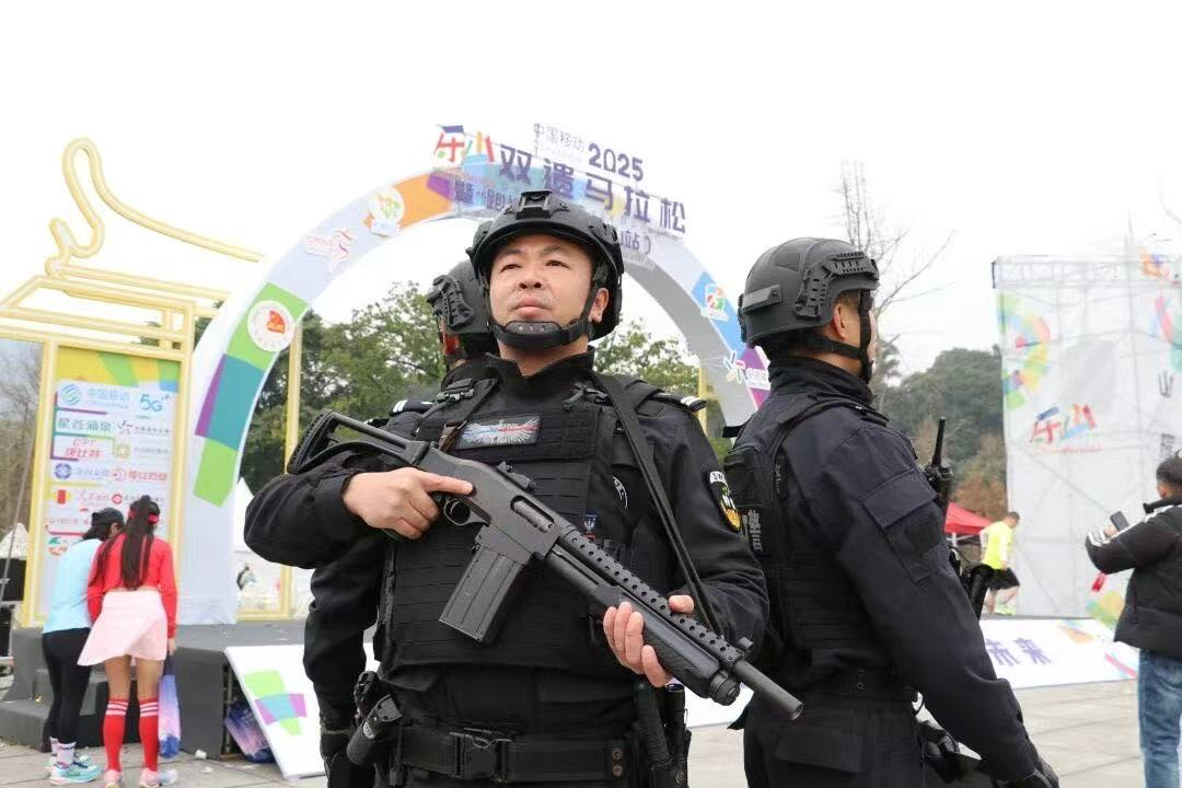 這束“光”,來自樂山政法隊伍在賽事保障中從“管控者”到“服務(wù)者”的角色轉(zhuǎn)變。在硬核守護方面,公安機關(guān)構(gòu)建起“智慧中樞+網(wǎng)格布警+機動處置”三維防控體系。在雙遺馬拉松中,樂山警方投入6088名安保力量,部署4G執(zhí)法記錄儀、無人機巡航、AR實景指揮系統(tǒng),實現(xiàn)賽道全程可視化管控。環(huán)法挑戰(zhàn)賽途經(jīng)多段山區(qū)道路,峨眉公安交管部門提前對賽事路段進行安全隱患排查整治,在陡坡、急彎處增設(shè)警示標志和防護設(shè)施,于比賽日當天設(shè)置51個執(zhí)勤點、11個專項工作組,確保車隊安全通過。