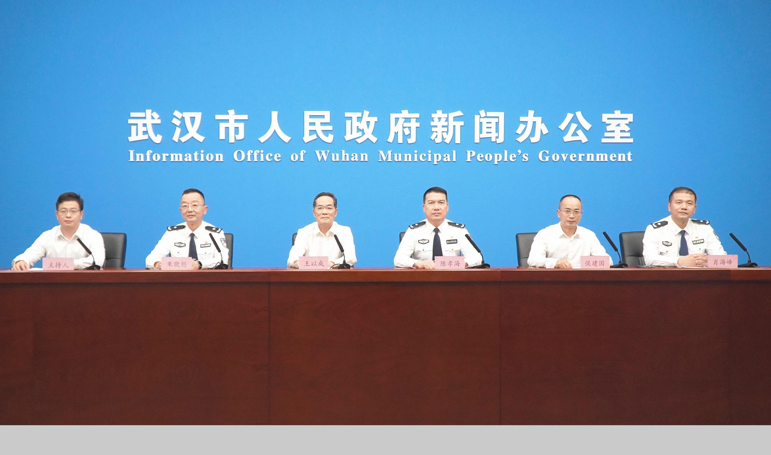 圖為武漢市打擊治理電信網(wǎng)絡(luò)新型違法犯罪新聞發(fā)布會(huì)現(xiàn)場(chǎng)。
