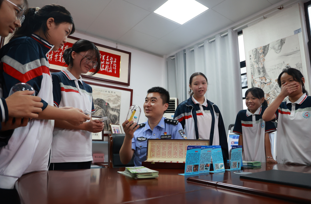 近日,江西省共青城市公安局禁毒民警邀請(qǐng)非遺傳承人、羽毛畫創(chuàng)作者走進(jìn)轄區(qū)校園,為同學(xué)們開展禁毒知識(shí)宣講,引導(dǎo)青少年遠(yuǎn)離毒品,擁抱健康人生。