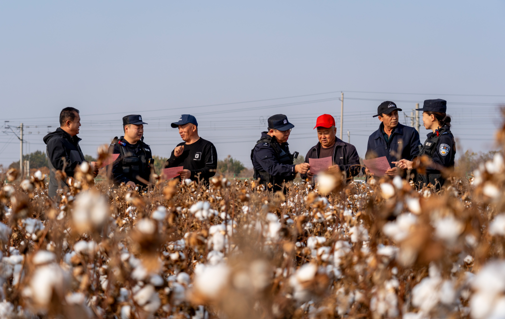 正值新疆棉花豐收季,10月21日,烏魯木齊鐵路公安處呼圖壁站派出所組織民警深入轄區(qū)棉花地與軋花場向棉農宣傳愛路護路及消防安全知識,筑牢棉區(qū)安全防線。