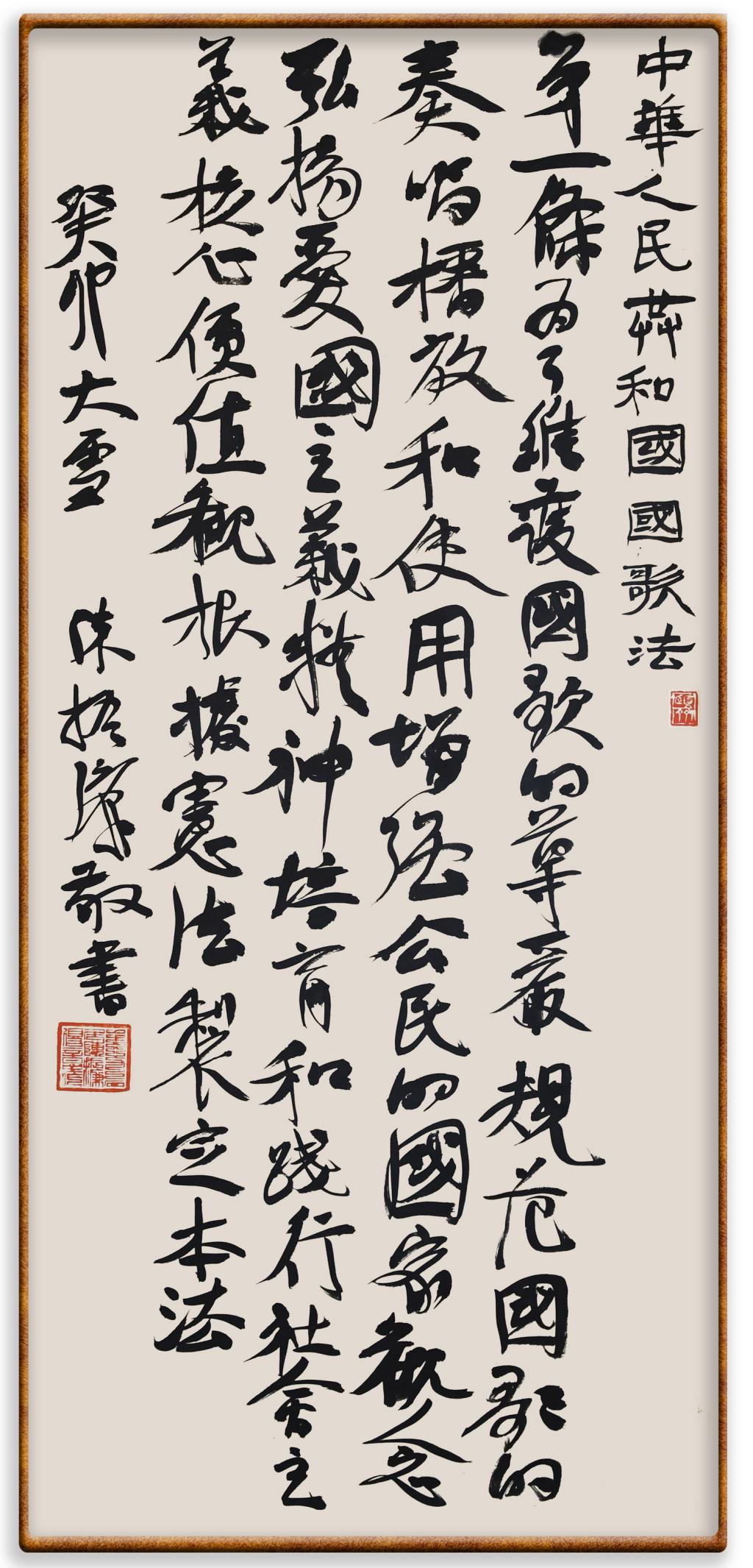 國歌法第一條 為了維護國歌的尊嚴,規(guī)范國歌的奏唱、播放和使用,增強公民的國家觀念,弘揚愛國主義精神,培育和踐行社會主義核心價值觀,根據(jù)憲法,制定本法。
