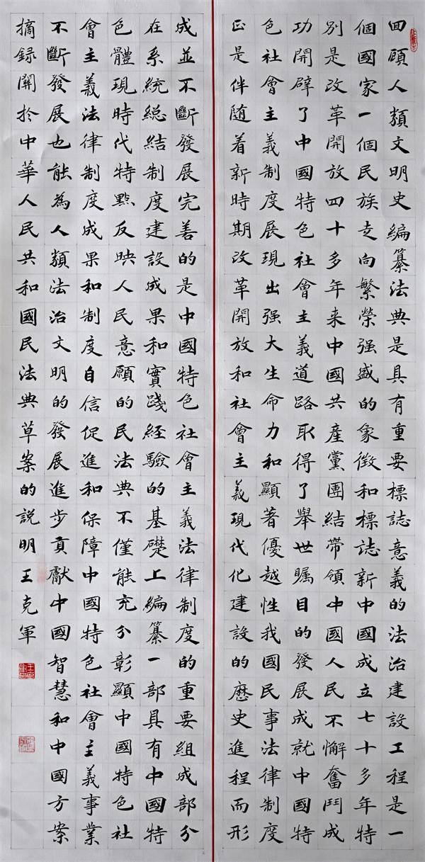 王克軍,內(nèi)蒙古自治區(qū)烏海市強(qiáng)制隔離戒毒所民警、內(nèi)蒙古書法家協(xié)會(huì)會(huì)員、烏海市書法家協(xié)會(huì)會(huì)員。民法典草案說明