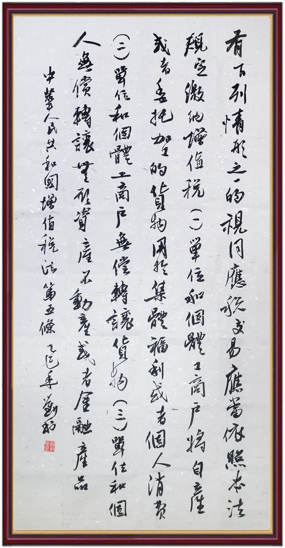 稅收一頭連著國(guó)計(jì),一頭連著民生。全面推進(jìn)依法治稅,是全面依法治國(guó)基本方略在稅收領(lǐng)域的集中體現(xiàn)?!吨腥A人民共和國(guó)增值稅法》將于2026年1月1日起施行,對(duì)全面落實(shí)稅收法定原則、健全有利于高質(zhì)量發(fā)展的增值稅制度、規(guī)范增值稅的征收和繳納、保護(hù)納稅人合法權(quán)益具有重要意義。繼書寫《中華人民共和國(guó)民法典》《中華人民共和國(guó)憲法》《中華人民共和國(guó)國(guó)旗法》《中華人民共和國(guó)國(guó)徽法》《中華人民共和國(guó)國(guó)歌法》《中華人民共和國(guó)法官法》《中華人民共和國(guó)黃河保護(hù)法》等法律法規(guī)之后,法制日?qǐng)?bào)社將筆端對(duì)準(zhǔn)《中華人民共和國(guó)增值稅法》。