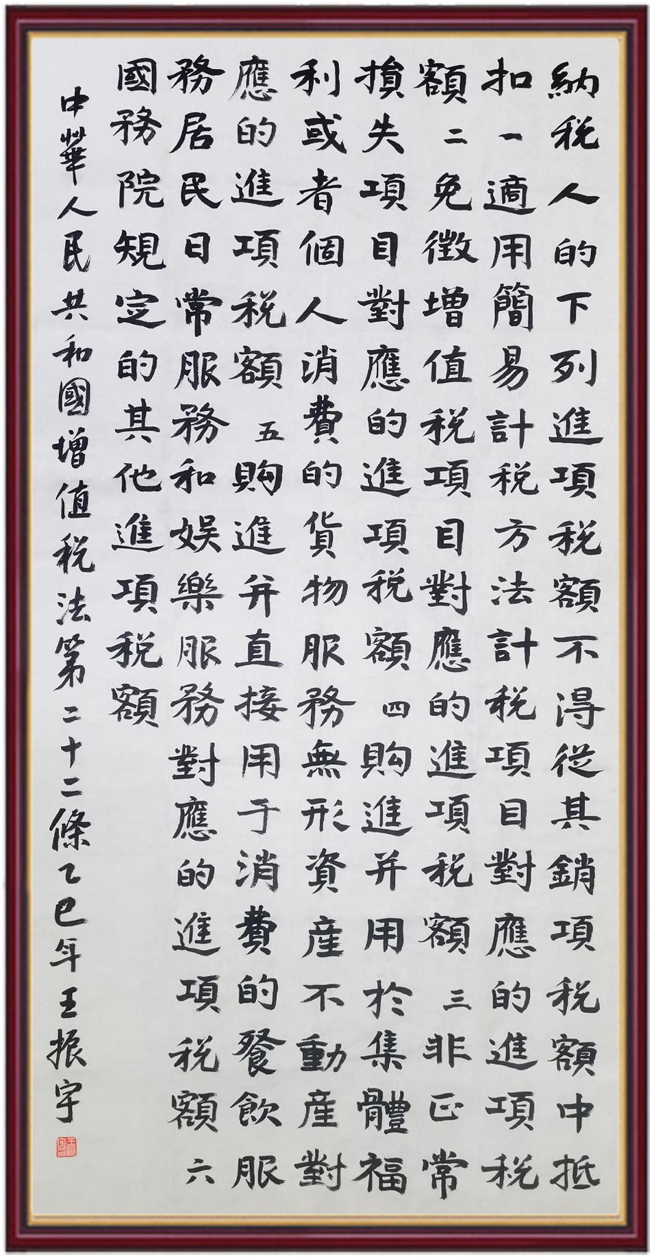 稅收一頭連著國計(jì),一頭連著民生。全面推進(jìn)依法治稅,是全面依法治國基本方略在稅收領(lǐng)域的集中體現(xiàn)?!吨腥A人民共和國增值稅法》將于2026年1月1日起施行,對(duì)全面落實(shí)稅收法定原則、健全有利于高質(zhì)量發(fā)展的增值稅制度、規(guī)范增值稅的征收和繳納、保護(hù)納稅人合法權(quán)益具有重要意義。繼書寫《中華人民共和國民法典》《中華人民共和國憲法》《中華人民共和國國旗法》《中華人民共和國國徽法》《中華人民共和國國歌法》《中華人民共和國法官法》《中華人民共和國黃河保護(hù)法》等法律法規(guī)之后,法制日?qǐng)?bào)社將筆端對(duì)準(zhǔn)《中華人民共和國增值稅法》。