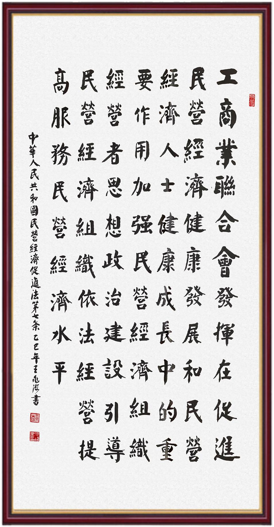 《中華人民共和國民營經(jīng)濟促進法》自今年5月20日起施行。作為我國首部專門關于民營經(jīng)濟發(fā)展的基礎性法律,民營經(jīng)濟促進法將支持和保障民營經(jīng)濟發(fā)展的法律制度融入中國特色社會主義法律體系,具有重大的法治意義,為促進民營經(jīng)濟持續(xù)、健康、高質(zhì)量發(fā)展提供了堅實的法治保障。為更好地學習、宣傳、貫徹這部法律,法治日報社聯(lián)合司法部普法與依法治理局,開展“‘書·法’系列活動之書寫《中華人民共和國民營經(jīng)濟促進法》”活動。