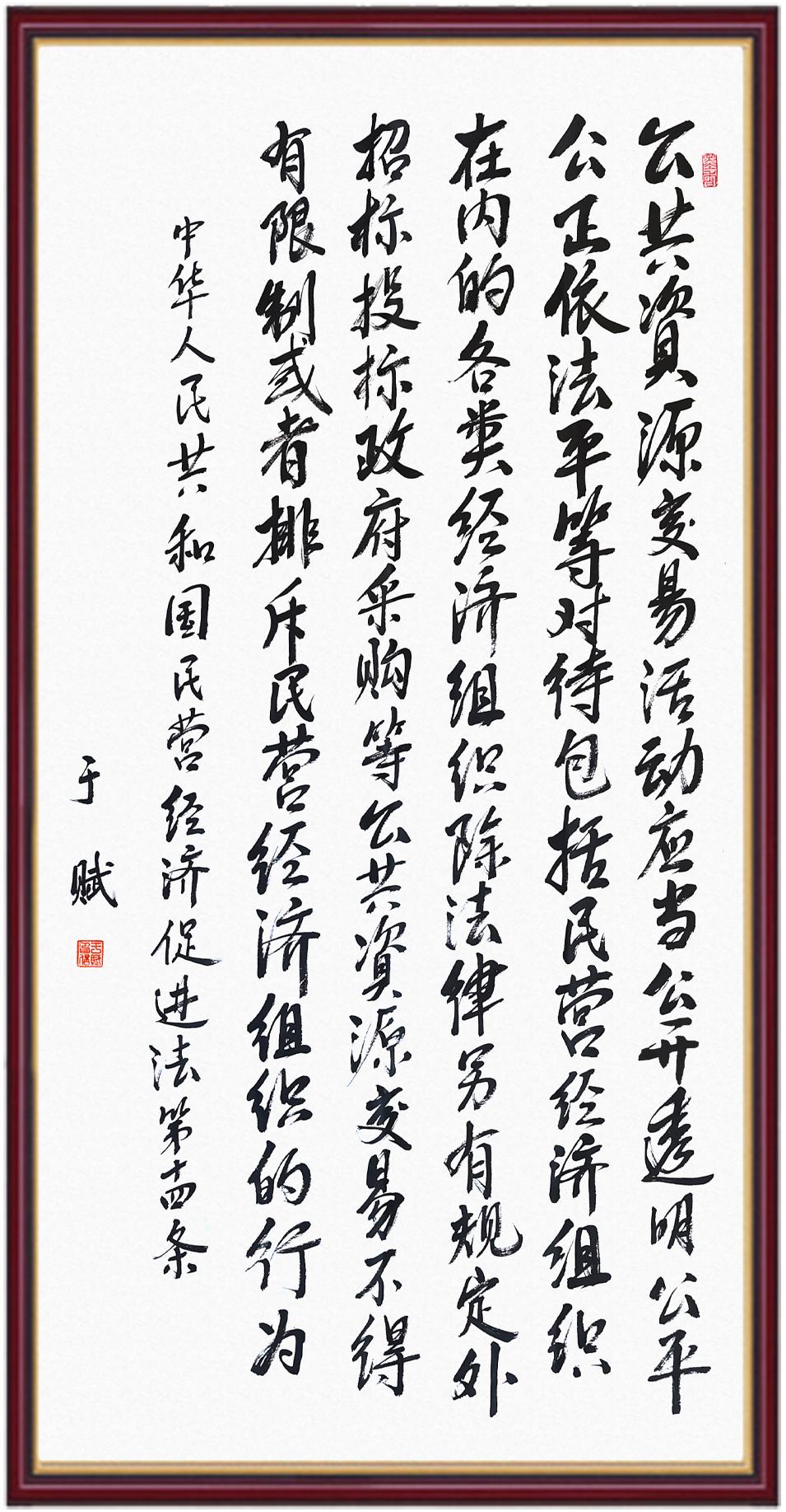 《中華人民共和國(guó)民營(yíng)經(jīng)濟(jì)促進(jìn)法》自今年5月20日起施行。作為我國(guó)首部專(zhuān)門(mén)關(guān)于民營(yíng)經(jīng)濟(jì)發(fā)展的基礎(chǔ)性法律,民營(yíng)經(jīng)濟(jì)促進(jìn)法將支持和保障民營(yíng)經(jīng)濟(jì)發(fā)展的法律制度融入中國(guó)特色社會(huì)主義法律體系,具有重大的法治意義,為促進(jìn)民營(yíng)經(jīng)濟(jì)持續(xù)、健康、高質(zhì)量發(fā)展提供了堅(jiān)實(shí)的法治保障。為更好地學(xué)習(xí)、宣傳、貫徹這部法律,法治日?qǐng)?bào)社聯(lián)合司法部普法與依法治理局,開(kāi)展“‘書(shū)·法’系列活動(dòng)之書(shū)寫(xiě)《中華人民共和國(guó)民營(yíng)經(jīng)濟(jì)促進(jìn)法》”活動(dòng)。