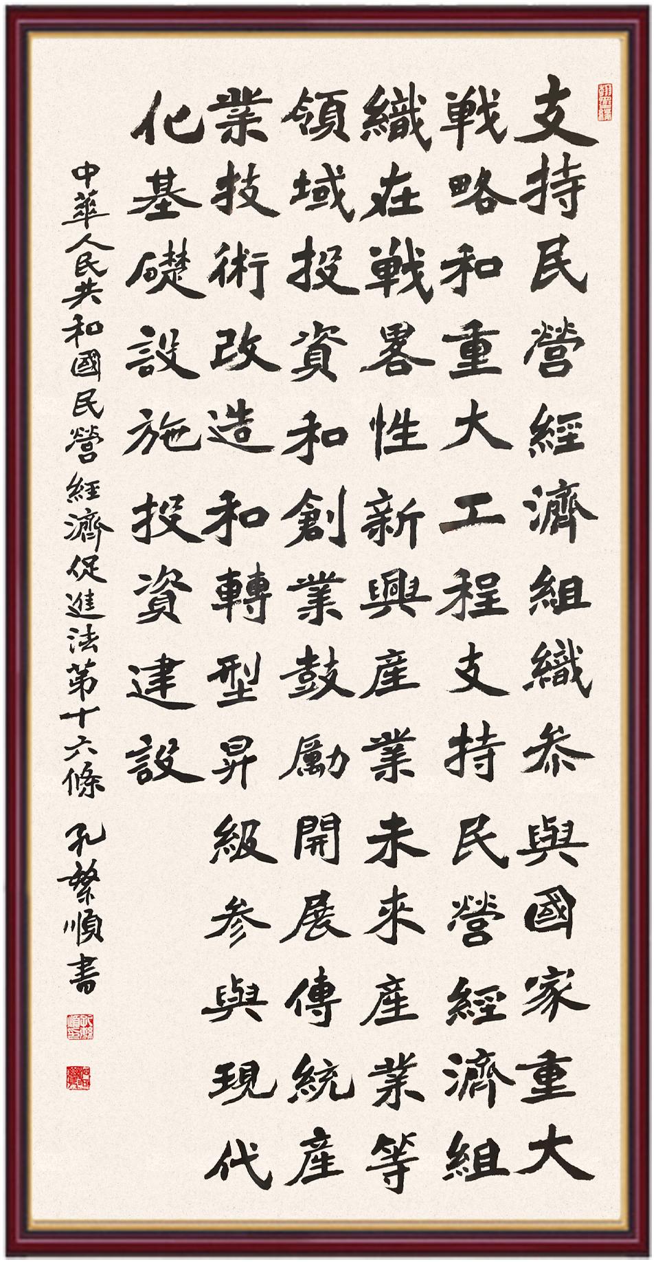 《中華人民共和國民營經(jīng)濟促進法》自今年5月20日起施行。作為我國首部專門關(guān)于民營經(jīng)濟發(fā)展的基礎性法律,民營經(jīng)濟促進法將支持和保障民營經(jīng)濟發(fā)展的法律制度融入中國特色社會主義法律體系,具有重大的法治意義,為促進民營經(jīng)濟持續(xù)、健康、高質(zhì)量發(fā)展提供了堅實的法治保障。為更好地學習、宣傳、貫徹這部法律,法治日報社聯(lián)合司法部普法與依法治理局,開展“‘書·法’系列活動之書寫《中華人民共和國民營經(jīng)濟促進法》”活動。
