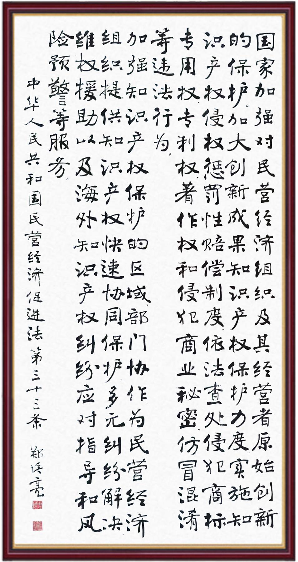 《中華人民共和國民營經(jīng)濟促進法》自今年5月20日起施行。作為我國首部專門關(guān)于民營經(jīng)濟發(fā)展的基礎性法律,民營經(jīng)濟促進法將支持和保障民營經(jīng)濟發(fā)展的法律制度融入中國特色社會主義法律體系,具有重大的法治意義,為促進民營經(jīng)濟持續(xù)、健康、高質(zhì)量發(fā)展提供了堅實的法治保障。為更好地學習、宣傳、貫徹這部法律,法治日報社聯(lián)合司法部普法與依法治理局,開展“‘書·法’系列活動之書寫《中華人民共和國民營經(jīng)濟促進法》”活動。