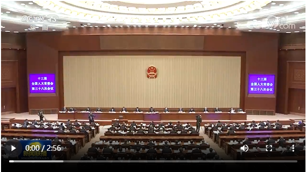 12月27日,十三屆全國(guó)人大常委會(huì)第三十八次會(huì)議在北京人民大會(huì)堂舉行第一次全體會(huì)議。栗戰(zhàn)書(shū)委員長(zhǎng)主持。新華社記者 龐興雷 攝