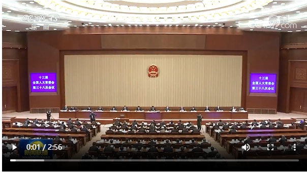 新華社北京12月27日電?十三屆全國人大常委會第三十八次會議27日上午在北京人民大會堂舉行第一次全體會議。栗戰(zhàn)書委員長主持。