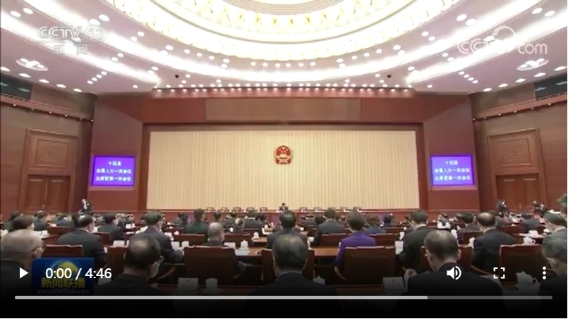 根據(jù)全國人大議事規(guī)則,會議首先在十三屆全國人大常委會委員長栗戰(zhàn)書的主持下,推選大會主席團(tuán)常務(wù)主席。