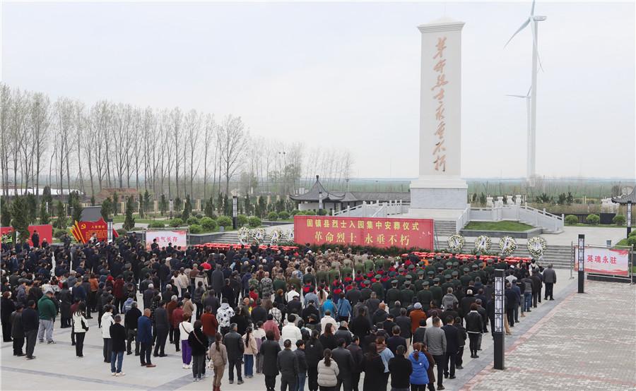 英雄浩氣存天地,烈士忠骨歸園陵。4月5日,在安徽省蚌埠市固鎮(zhèn)縣任橋鎮(zhèn)清涼村,60名散居烈士遺骸被集中遷移安葬在固鎮(zhèn)縣烈士陵園(原淮北西大門抗戰(zhàn)烈士陵園)內(nèi)。