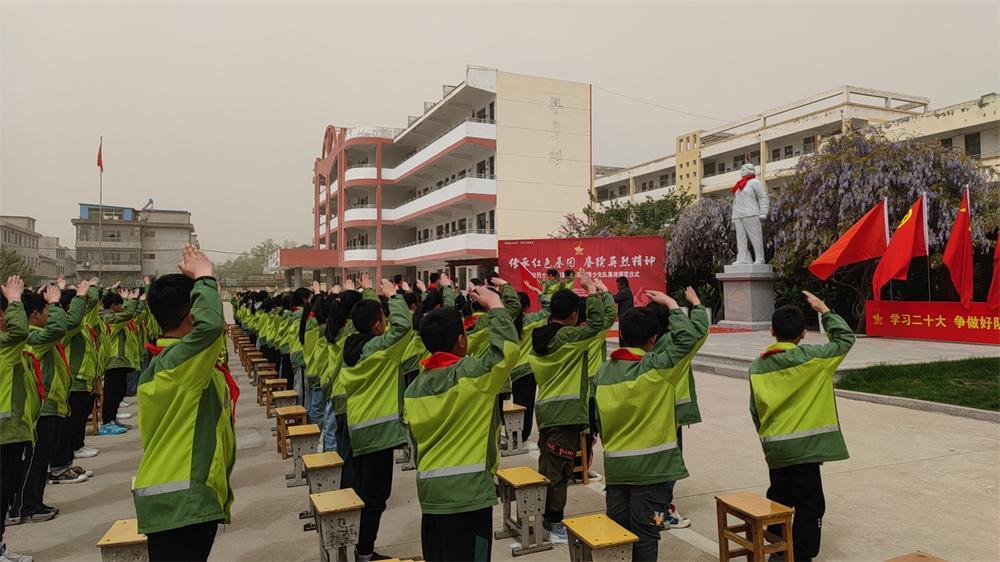 隨后,少先隊(duì)員代表集體朗讀《紅色的中國》:“看吶,那冉冉升起的五星紅旗,是最艷麗的紅,紅得堅強(qiáng),紅得剛烈,紅得熱情,世界的東方,飄揚(yáng)著一抹紅,紅紅火火大中國……”