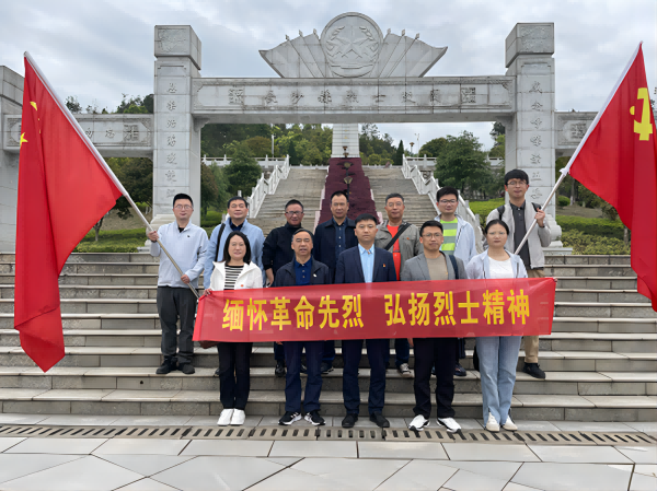 長(zhǎng)沙縣革命烈士陵園坐落在長(zhǎng)沙縣金井鎮(zhèn)石井村華坡組,是開展愛國(guó)主義、革命英雄主義教育和雙擁宣傳、國(guó)防教育的重要場(chǎng)所。青山翠柏,靜謐肅穆。大家懷著萬(wàn)分崇敬的心情來到了烈士陵園入口廣場(chǎng),在祭拜廣場(chǎng)的英烈墻前整齊列隊(duì)行三鞠躬禮,并敬獻(xiàn)鮮花,表達(dá)對(duì)長(zhǎng)眠于陵園的800多名烈士的深切緬懷和崇高敬意。宣誓墻前,黨員們舉起右手,緊握拳頭,重溫入黨誓詞。全體黨員依次瞻仰了烈士塔祭拜中軸線區(qū)、東、西烈士墓區(qū),英烈事跡展覽館等,大家一邊聆聽講解員的解說,一邊思忖著那些感人至深、催人奮進(jìn)的烈士事跡,陳列墻上的老照片和展柜里靜靜躺著的件件革命遺物,仿佛又把大家拉回到了那段艱苦卓絕的崢嶸歲月。