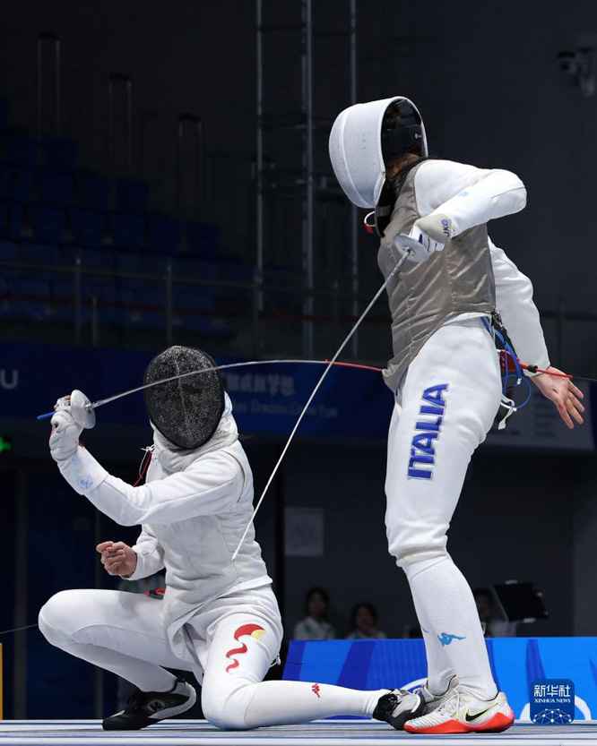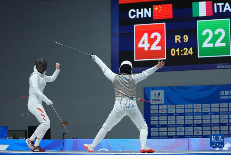 當日,在成都舉行的第31屆世界大學(xué)生夏季運動會擊劍女子花劍團體金牌賽中,中國隊以45比22戰(zhàn)勝意大利隊,獲得金牌。