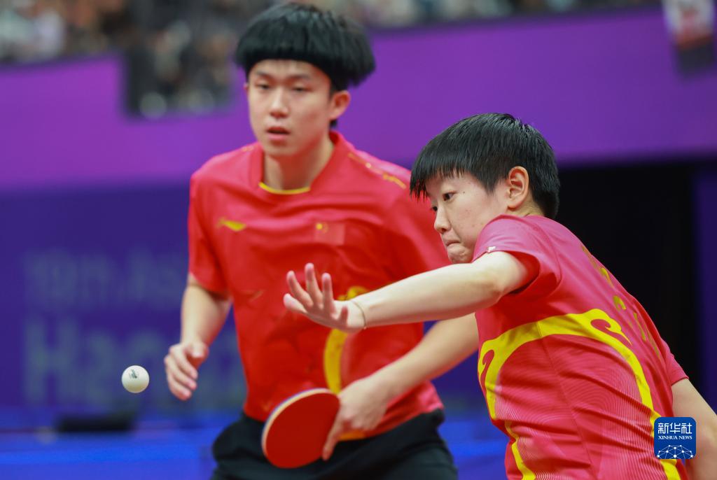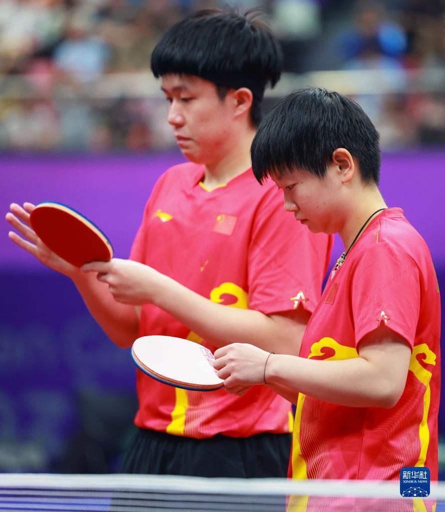 當(dāng)日,在杭州亞運會乒乓球項目混合雙打淘汰賽第二輪比賽中,中國組合王楚欽/孫穎莎以3比0戰(zhàn)勝巴林組合亞斯·艾哈邁德·穆罕默德·賈西姆·亞西/阿姆魯塔·阿米特·帕德克。