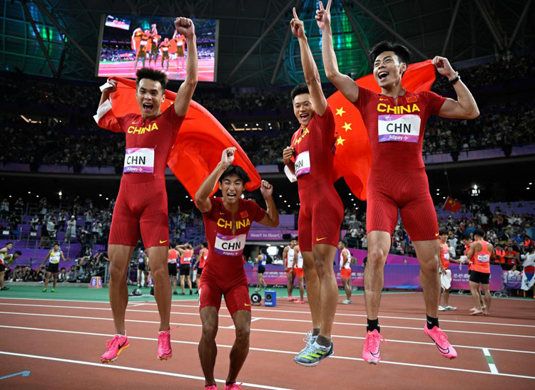 拿下這兩枚金牌后,中國隊(duì)創(chuàng)造了一項(xiàng)歷史:在同一屆亞運(yùn)會(huì)中,首次由一個(gè)代表團(tuán)包攬男女100米和男女4×100米接力金牌。在杭州,“中國速度”屹立亞洲之巔!