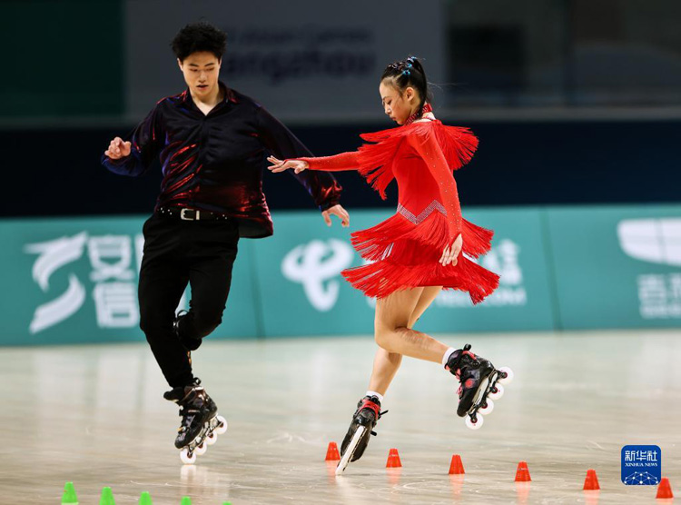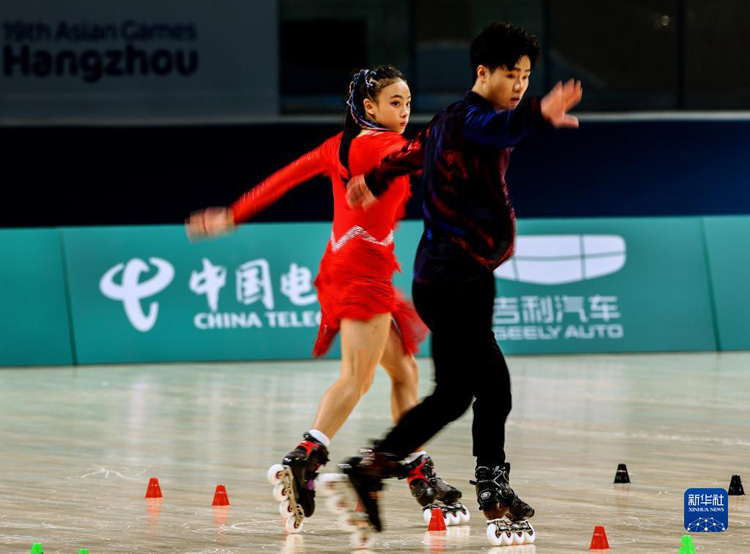 當(dāng)日,在杭州亞運(yùn)會混合自由式輪滑男女雙人花式繞樁決賽中,中國組合張顥/朱思怡獲得冠軍。