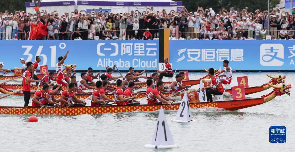 當(dāng)日,在浙江溫州龍舟運(yùn)動(dòng)中心進(jìn)行的杭州亞運(yùn)會(huì)男子組12人龍舟500米直道競(jìng)速賽中,中國(guó)隊(duì)以2分09秒152的成績(jī)獲得冠軍。印度尼西亞隊(duì)獲得亞軍,泰國(guó)隊(duì)獲得季軍。