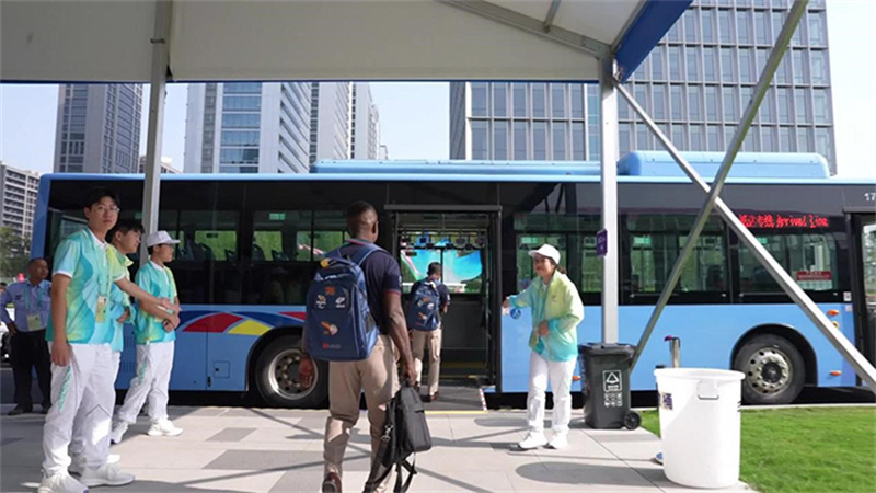 在亞殘運(yùn)村,運(yùn)動(dòng)員們交通出行相當(dāng)便利,無(wú)論是小型接駁車(chē)還是接駁巴士,每一輛車(chē)都配備了齊全的助殘?jiān)O(shè)備,輪椅可以輕松上下?!按濉眱?nèi)站點(diǎn)安排合理,從居住區(qū)到運(yùn)動(dòng)員餐廳,從歡迎中心到綜合門(mén)診部,“村”內(nèi)交通路線四通八達(dá),班次密集,乘坐方便,駕駛員們的服務(wù)更是讓人豎起大拇指。